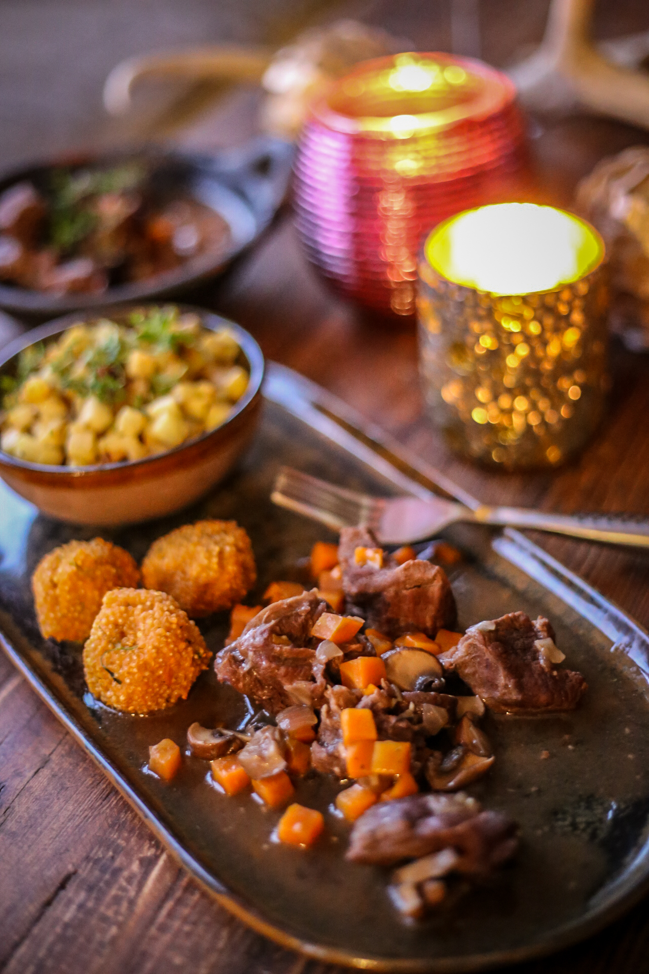Zowel de hertenragout als de zoete aardappelkroketjes kan je al op voorhand voorbereiden of klaarzetten, zodat je tijdens de avond kan genieten.