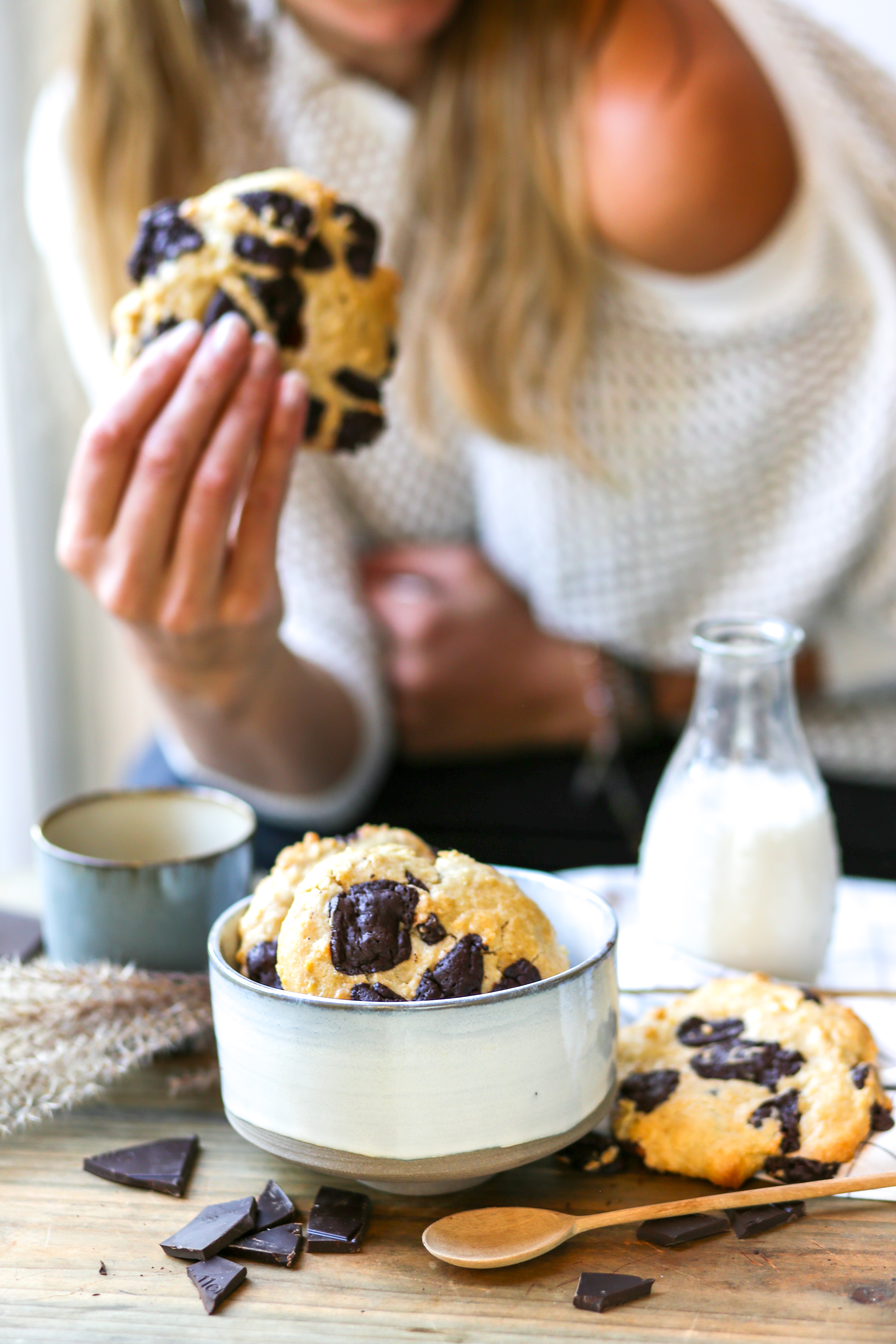 - Bekleed een bakplaat met bakpapier, maak zes grote, ronde hoopje deeg. Duw ze plat met de achterkant van je lepel.